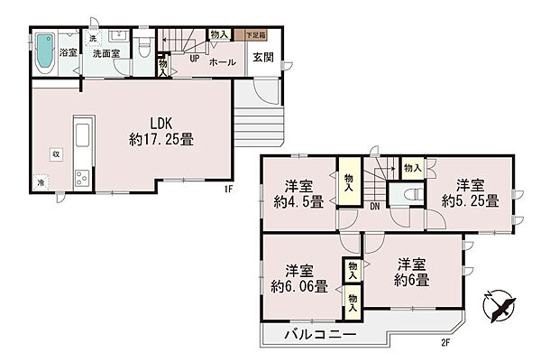 | 間取り | 4LDK 間取り内訳:リビングダイニングキッチン 17.2帖(1階) |