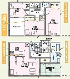 | 間取り | 4SLDK 間取り内訳:リビングダイニングキッチン 16.5帖・和室 4.5畳・洋室 6帖・洋室 7.5帖・洋室 6帖・収納 |