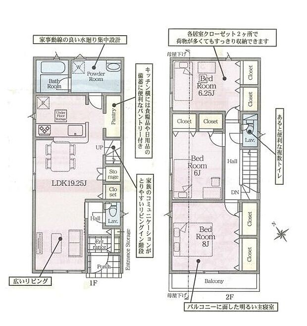 | 間取り | 3LDK 間取り内訳:リビングダイニングキッチン 19.2帖(1階)・洋室 6.2帖(2階)・洋室 6帖(2階)・洋室 8帖(2階) |