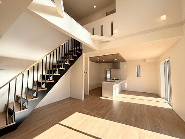 子育てグリーン住宅対象(長期優良)。明るい吹抜と床暖房付きのLDKは広々20帖。カースペース2台分。