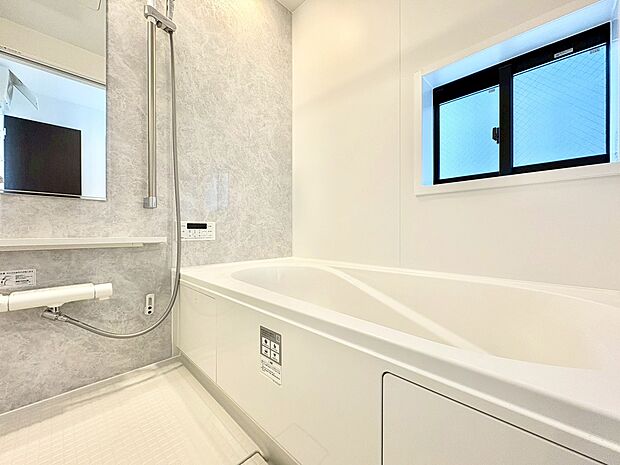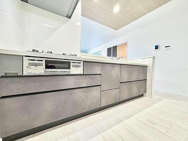 駐車スペース2台可(車種による) 完成済みにつき内覧・即時引渡し可能 1坪サイズバスルーム 玄関カードキーシステム 都市ガス