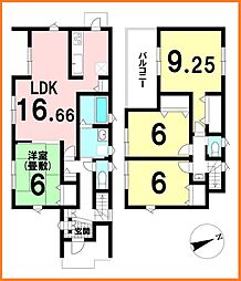 | 間取り | 4LDK 間取り内訳:リビングダイニングキッチン 16帖(1階)・和室 5畳(1階)・洋室 9.2帖(2階)・洋室 6帖(2階)・洋室 5.2帖(2階) |