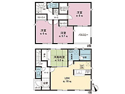 | 間取り | 4LDK 間取り内訳:リビングダイニングキッチン 16帖(1階)・和室 4.5畳(1階)・洋室 7.2帖(2階)・洋室 6帖(2階)・洋室 5.2帖(2階) |