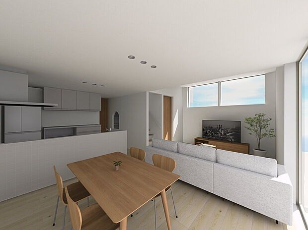 • 【光が満ちる開放的なリビング空間】大きな窓から柔らかな光が差し込み、家族が自然と集まる心地よいリビング。伸びやかな空間設計が毎日の暮らしを明るくしてくれます。