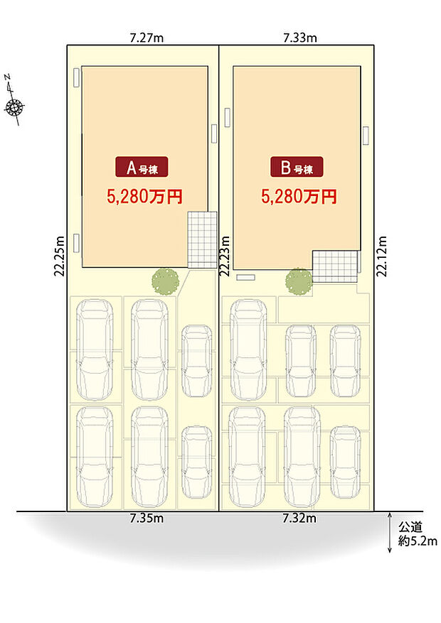 - 「建築条件付き土地」の「建物プラン例」は、土地購入者の設計プランの一例であり、プランの採用可否は任意です。