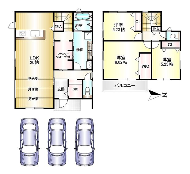 | 建物面積 | 1号棟107.23m2・2号棟105.99m2・3号棟103.5m2 | ||