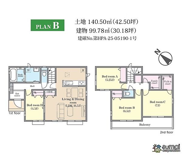 | 間取り | 4LDK 間取り内訳:リビングダイニングキッチン・洋室・洋室・洋室・洋室 |