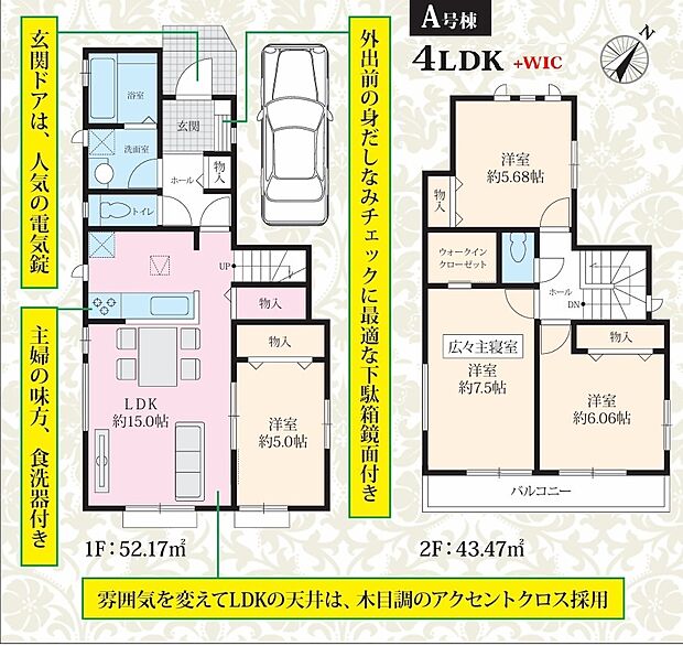 玄関ドアに人気の電気錠、LDK天井はアクセントクロス☆2駅利用可能☆