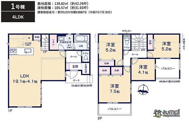 | 間取り | 4LDK 間取り内訳:リビングダイニングキッチン・洋室・洋室・洋室・洋室 |