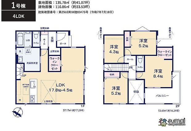 駅徒歩10分☆広々LDK22.3帖☆採光重視の吹抜有☆並列駐車2台可能♪玄関スッキリ土間収納設計です♪