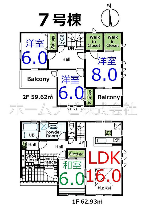 | 間取り | 4LDK 間取り内訳:リビングダイニングキッチン 16帖(1階)・和室 6畳(1階)・洋室 8帖(2階)・洋室 6帖(2階)・洋室 6帖(2階) |