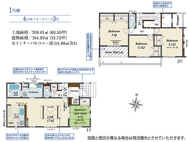 - 「土地(建築条件なし)」の「建物プラン例」に関して、そのプラン例は特定の建築請負会社によるもので、当該建築請負会社以外で建てた場合、同様のものが同価格で建てられるとは限りません。また、建築請負会社を特定するものではありません。