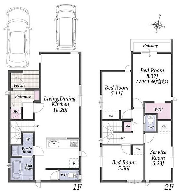 並列2台駐車可能なカースペース付き。LDKは広々18畳の新築分譲住宅です。