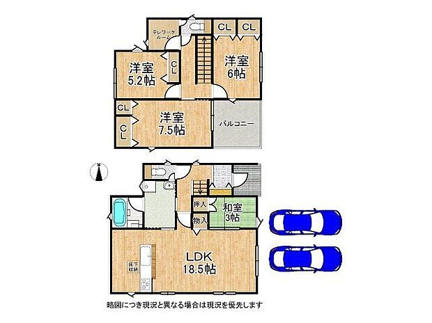 | 間取り | 4LDK LDK16帖・18帖・18.5帖 駐車2台以上 和室 WIC リビング収納 廊下収納 |