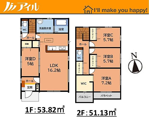 • 「建築条件付き土地」の「建物プラン例」は、土地購入者の設計プランの一例であり、プランの採用可否は任意です。