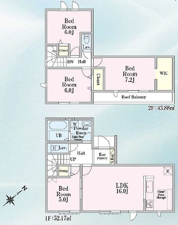 | 間取り | 4LDK 間取り内訳:リビングダイニングキッチン 16帖(1階)・洋室 5帖(1階)・洋室 7.2帖(2階)・洋室 6帖(2階)x2 |