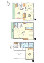 | 間取り | 3LDK 間取り内訳:リビングダイニングキッチン 17.2帖(2階)・洋室 4帖(1階)・洋室 7.2帖(3階)・洋室 6帖(3階) |