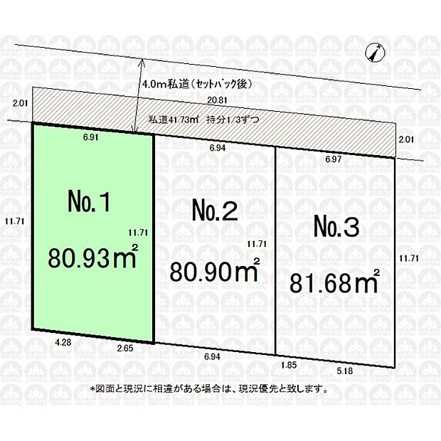 | 私道負担 | 13.91m2 | 用途地域 | 第一種中高層住居専用地域 |