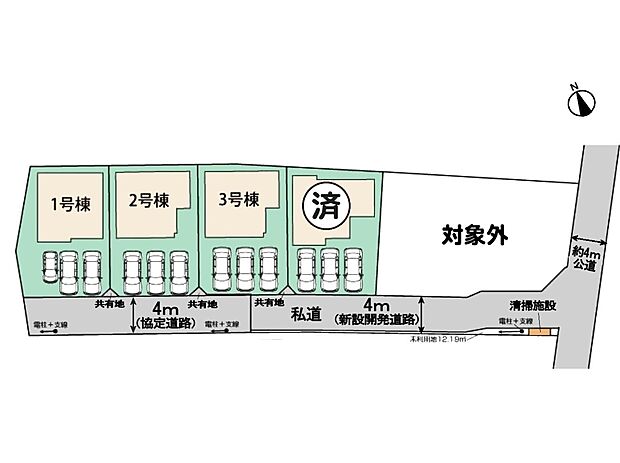私道負担 145.32m2私道負担割合:5分の1 用途地域 準工業地域