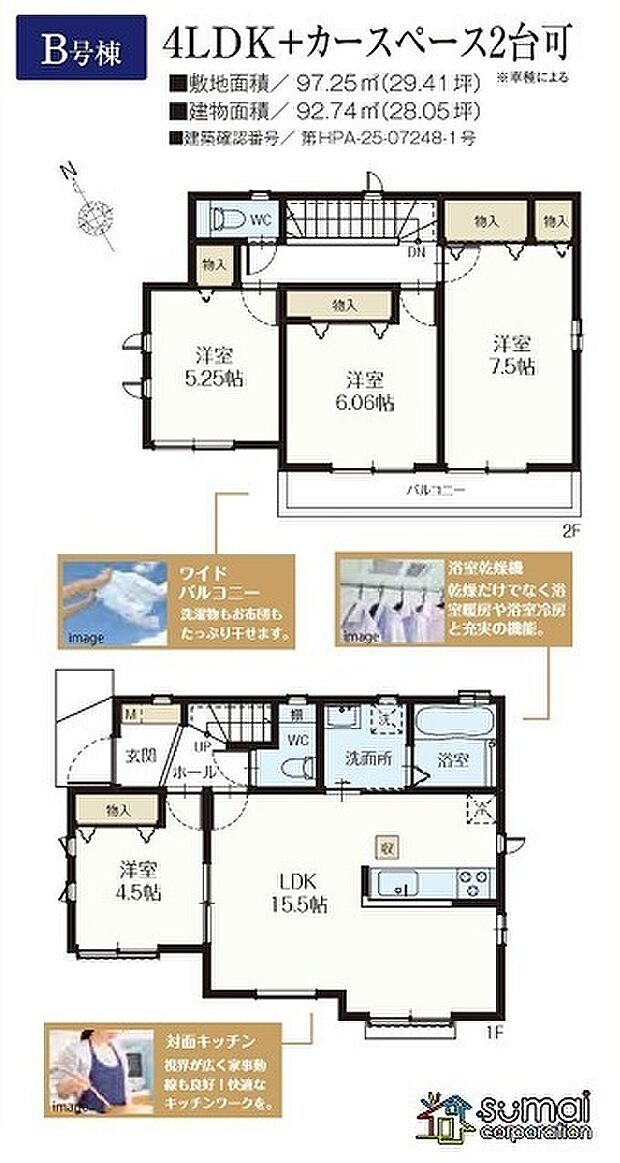 | 間取り | 4LDK 間取り内訳:リビングダイニングキッチン・洋室・洋室・洋室・洋室 |