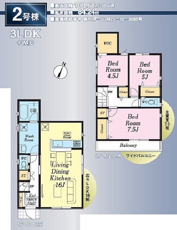 | 間取り | 3LDK 間取り内訳:リビングダイニングキッチン 16帖(1階)・和室 4.5畳(2階)・洋室 5帖(2階)・洋室 7.5帖(2階) |