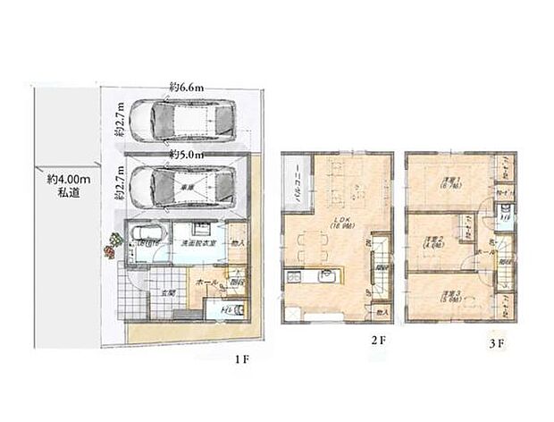 | 間取り | 3LDK 間取り内訳:リビングダイニングキッチン 18.9帖(2階)・洋室 6.7帖(3階)・洋室 4.6帖(3階)・洋室 5.6帖(3階) |