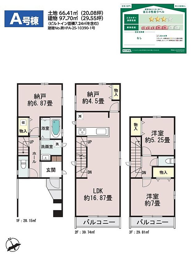 | 間取り | 2SLDK 間取り内訳:収納 6.8帖(1階)・リビングダイニングキッチン 16.8帖(2階)・収納 4.5帖(2階)・洋室 5.2帖(2階)・洋室 7帖(2階) |