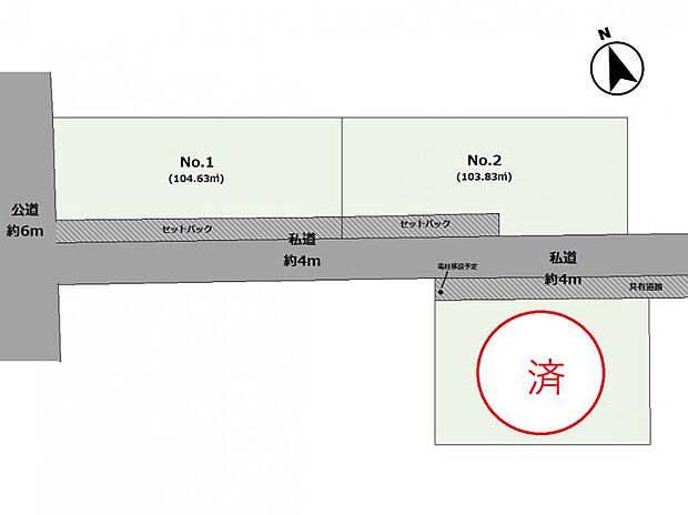 | 私道負担 | 614.42m2私道負担割合:6分の1 | 用途地域 | 第二種住居地域 |