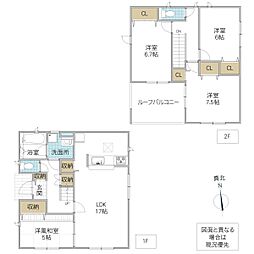 | 間取り | 4LDK 間取り内訳:リビングダイニングキッチン 17帖・洋室 7.5帖・洋室 6.7帖・洋室 6帖・和室 5畳 |