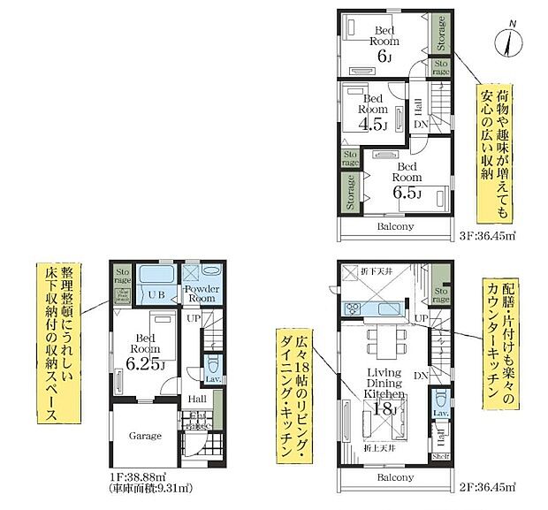 | 間取り | 4LDK 間取り内訳:リビングダイニングキッチン 18帖・洋室 6.5帖・洋室 6.2帖・洋室 6帖・洋室 4.5帖 |