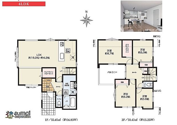 間取り内訳:リビングダイニングキッチン・洋室・洋室・洋室・洋室