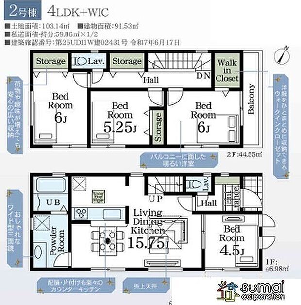 • 「建築条件付き土地」の「建物プラン例」は、土地購入者の設計プランの一例であり、プランの採用可否は任意です。