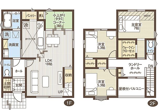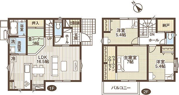 • 「建築条件付き土地」の「建物プラン例」は、土地購入者の設計プランの一例であり、プランの採用可否は任意です。