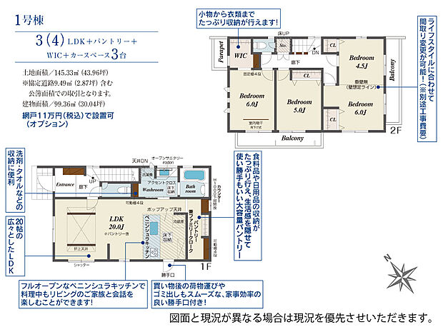 | 建物面積 | 99.36m2(約30.05坪)~103.92m2(約31.43坪) | ||