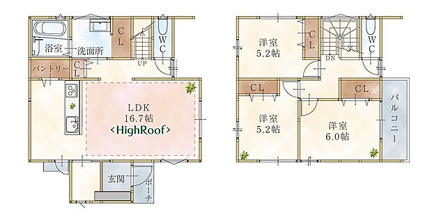 | 間取り | 3LDK 間取り内訳:その他 16.7帖・洋室 6帖・洋室 5.2帖・洋室 5.2帖 |