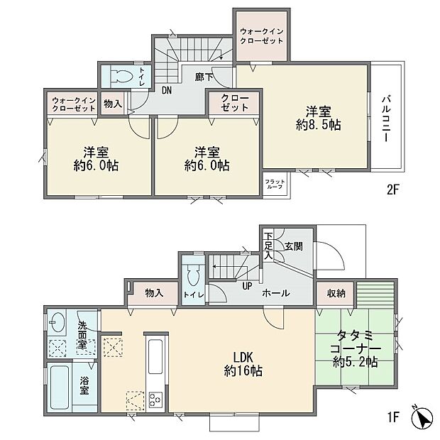間取り内訳:洋室 6帖・洋室 6帖・リビングダイニングキッチン 16帖・洋室 8.5帖