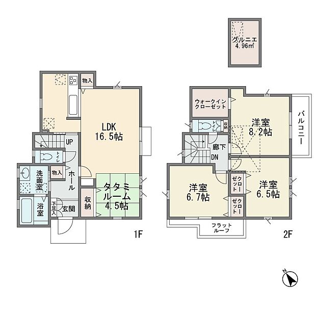| 間取り | 3LDK 間取り内訳:リビングダイニングキッチン 16.5帖・洋室 8.2帖・洋室 6.7帖・洋室 6.5帖 |