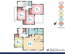 | 間取り | 4LDK 間取り内訳:リビングダイニングキッチン 15.8帖(1階)・和室 6畳(1階)・洋室 8.5帖(2階)・洋室 6帖(2階)・洋室 6帖(2階) |