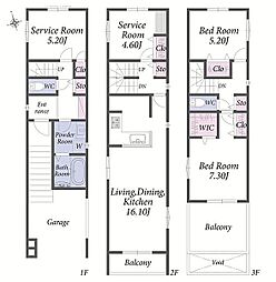 | 間取り | 3SLDK 間取り内訳:収納 5帖(1階)・リビングダイニングキッチン 18.5帖(2階)・洋室 5.7帖(3階)・洋室 4.5帖(3階)・洋室 6帖(3階) |