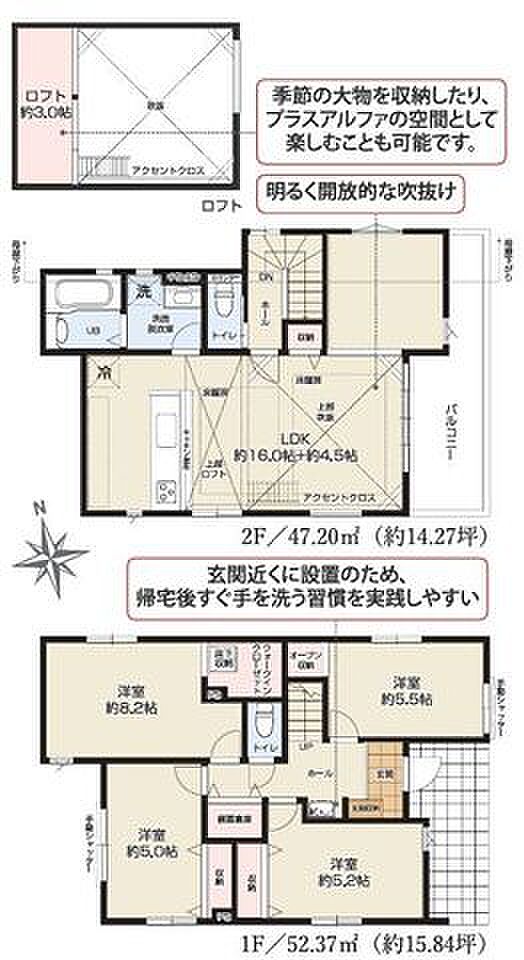 【最終1棟!鵠沼海岸駅徒歩13分!スーパー徒歩3分、公園徒歩1分!床暖房付きLDKの新築戸建】カースペース並列2台可多用途に利用できるロフト3.0帖