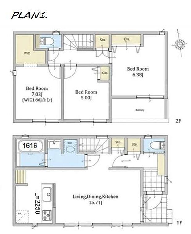 間取り内訳:リビングダイニングキッチン 15.7帖(1階)・洋室 7帖(2階)・洋室 6.3帖(2階)・洋室 5帖(2階)