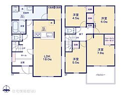 | 間取り | 3LDK 間取り内訳:洋室 5.6帖・リビングダイニングキッチン 18.3帖・洋室 6.7帖・洋室 6.2帖・収納 1.6帖 |