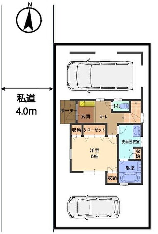 • 西 (私道 幅員 4.00m 接面 7.50m)