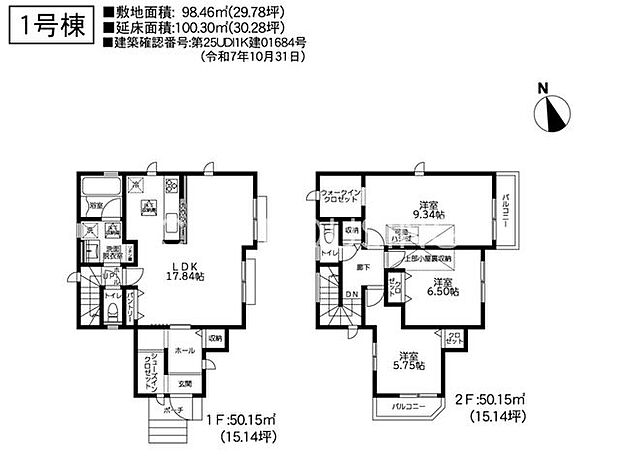 | 間取り | 3LDK 間取り内訳:リビングダイニングキッチン 17.8帖(1階)・洋室 9.3帖(2階)・洋室 6.5帖(2階)・洋室 5.7帖(2階) |