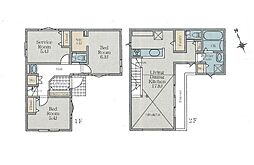 | 間取り | 2SLDK 間取り内訳:収納 5.4帖(1階)・洋室 5.4帖(1階)・洋室 6.3帖(1階)・リビングダイニングキッチン 17.8帖(2階) |