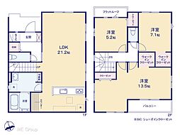 | 間取り | 3LDK(間仕切り対応3(4)LDK) 間取り内訳:リビングダイニングキッチン 21.2帖(1階)・洋室 5.2帖(2階)・洋室 7.1帖(2階)・洋室 13.5帖(2階) |