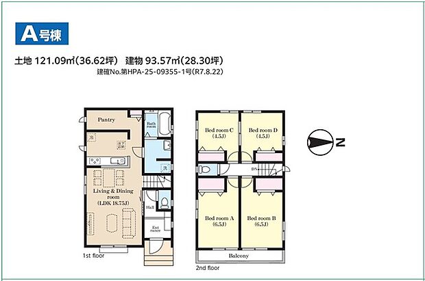 | 間取り | 4LDK 間取り内訳:リビングダイニングキッチン 18.7帖・洋室 6.5帖・洋室 6.5帖・洋室 4.5帖・洋室 4.5帖 |