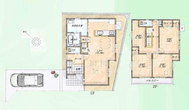 | 間取り | 3LDK 間取り内訳:リビングダイニングキッチン 18.3帖(1階)・洋室 5.2帖(2階)・洋室 5.2帖(2階)・洋室 6帖(2階) |