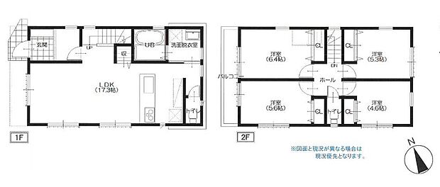 | 間取り | 4LDK 間取り内訳:リビングダイニングキッチン 17.3帖・洋室 6.4帖・洋室 5.6帖・洋室 5.3帖・洋室 4.6帖 |