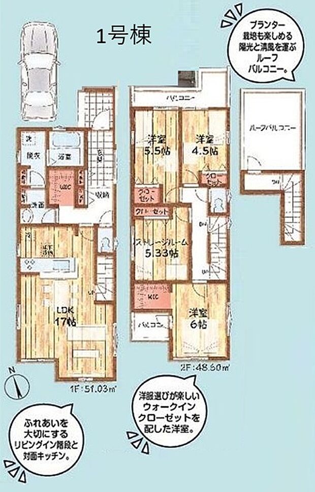 駅徒歩13分。ストレージルーム(納戸)付。リビング階段。WIC2ヶ所。食洗機。ルーフバルコニー。コンビニ徒歩約4分、保育園徒歩約6分、昭和記念公園徒歩約12分